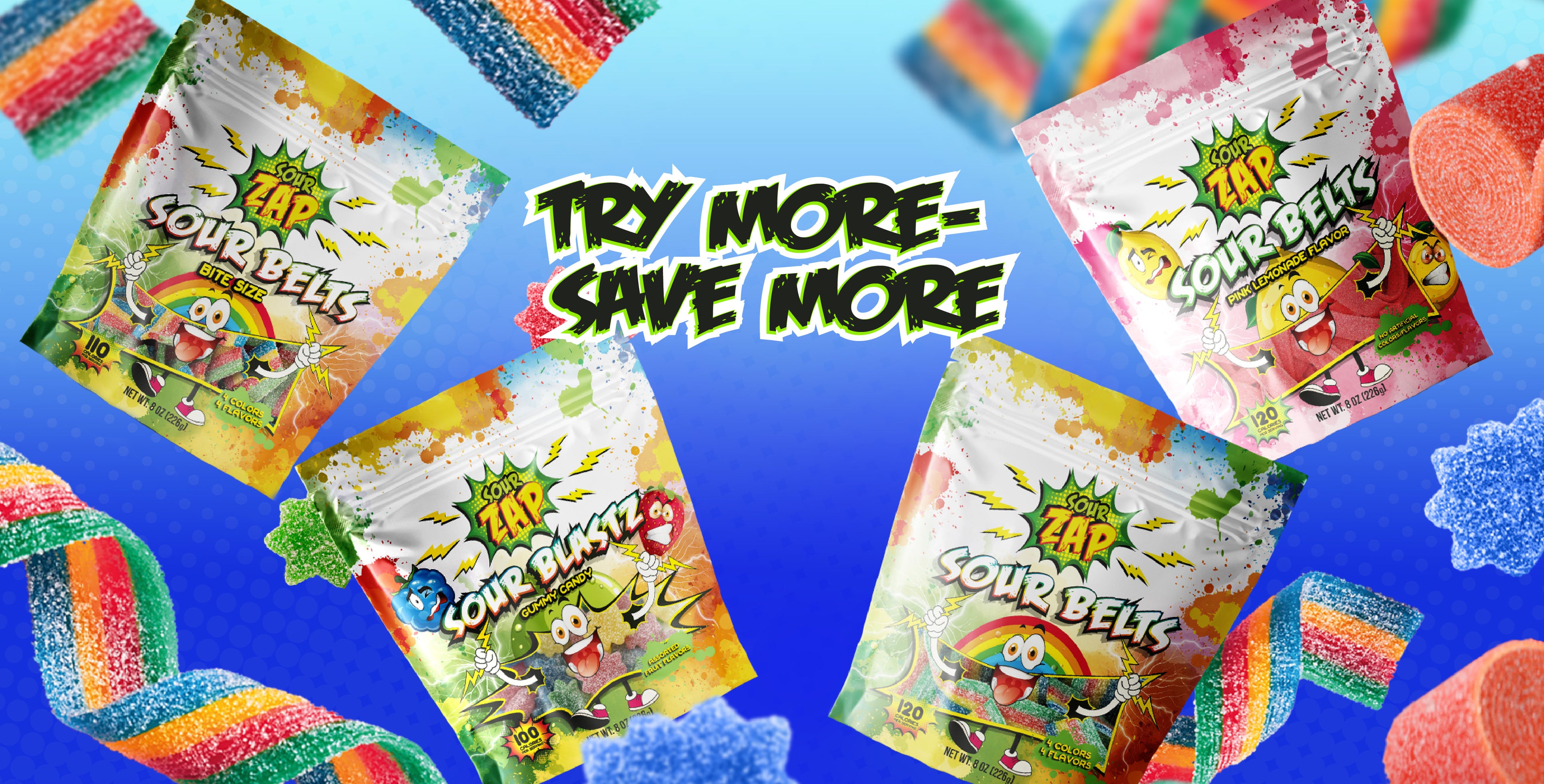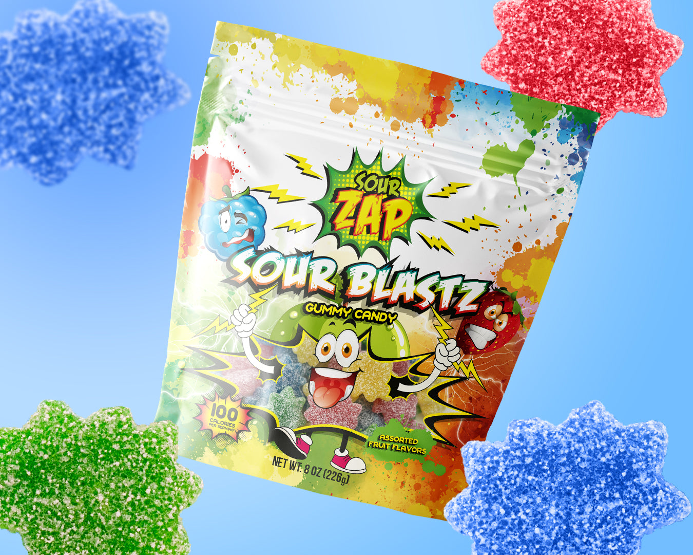 Tuttti-Frutti, Blue Raspberry, Green Apple & Strawberry — an extra sour explosion in every chewy bite